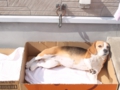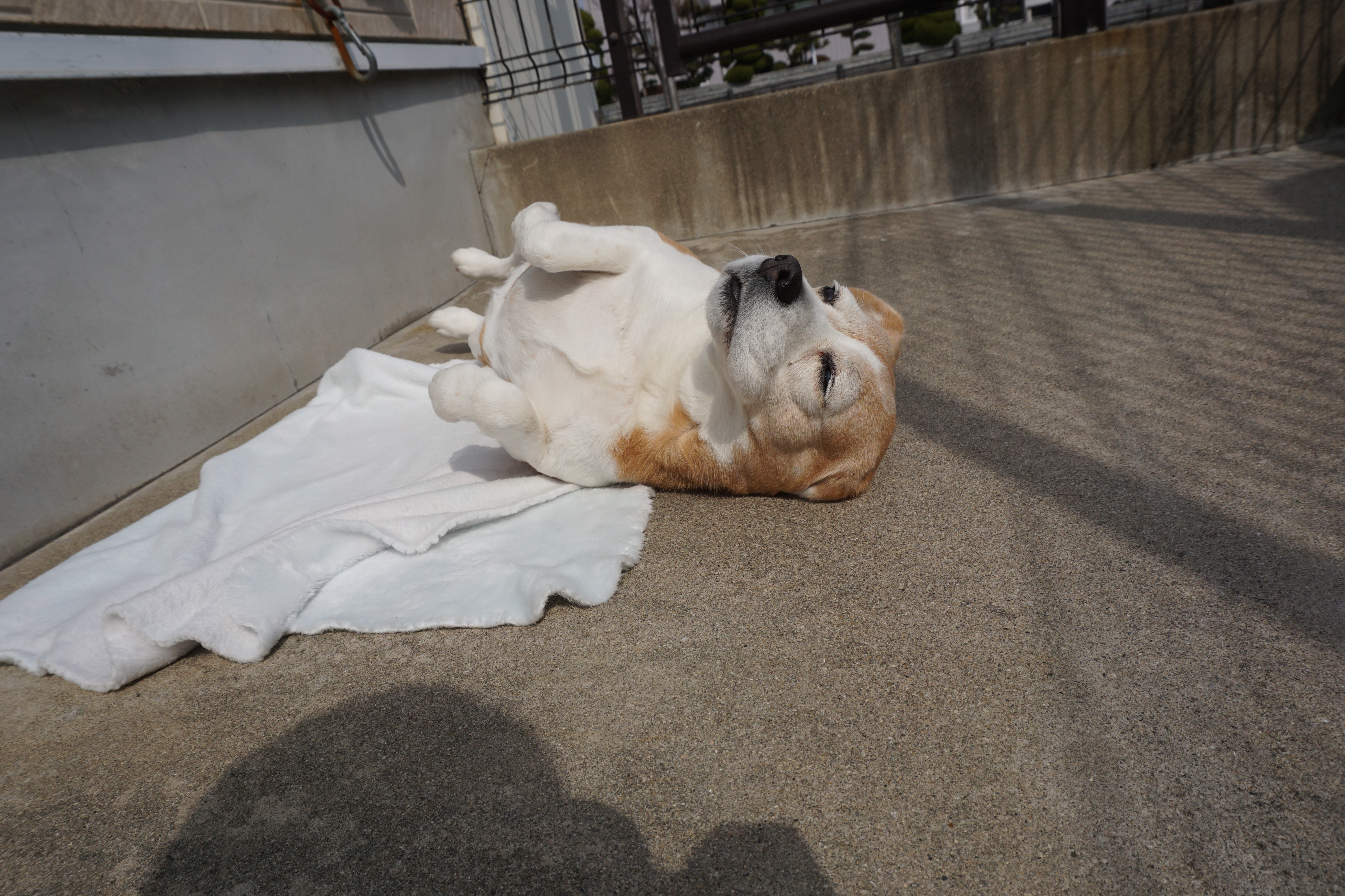 干し終わった後も「まだ帰らない!ポカポカしとくの🐶」と