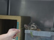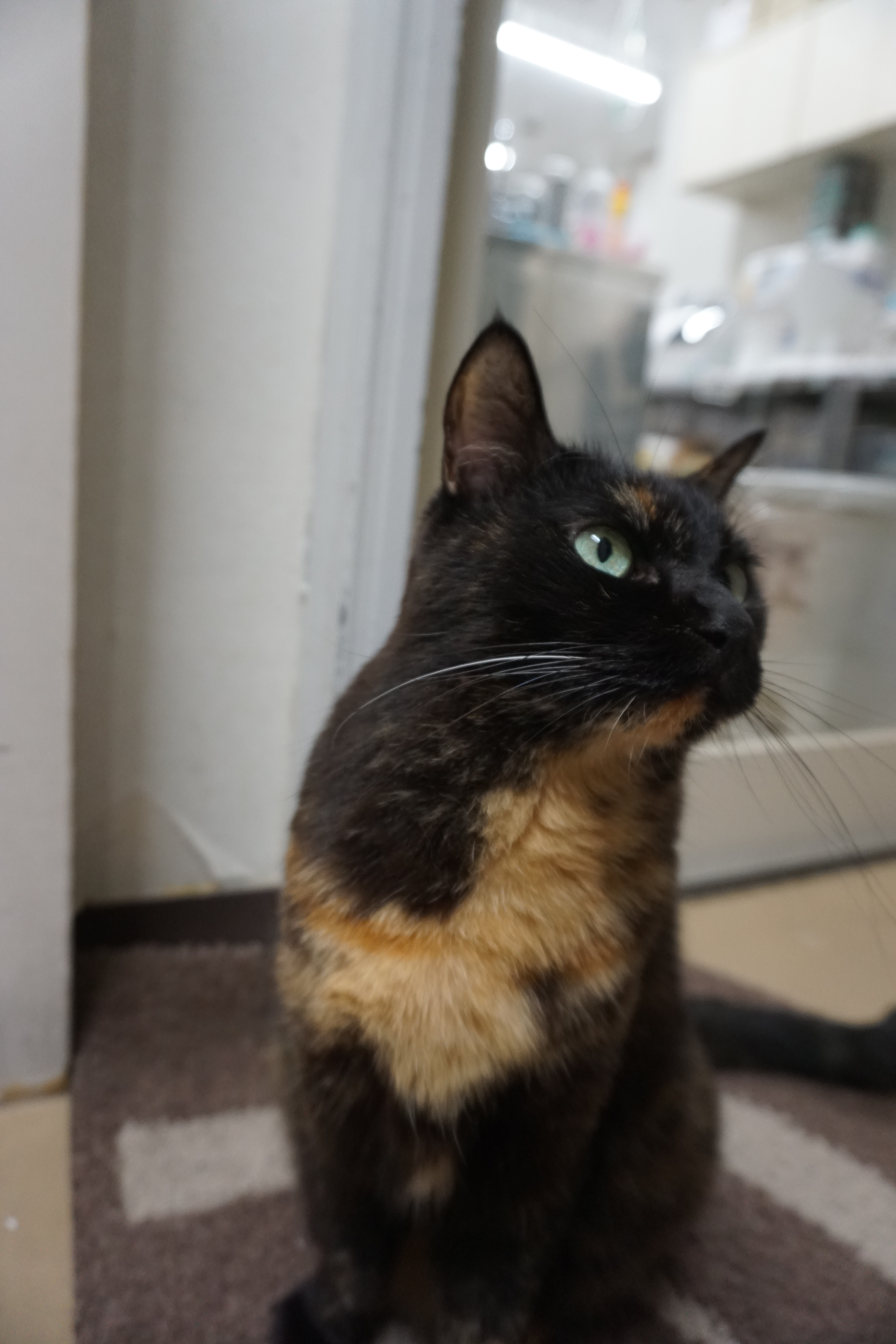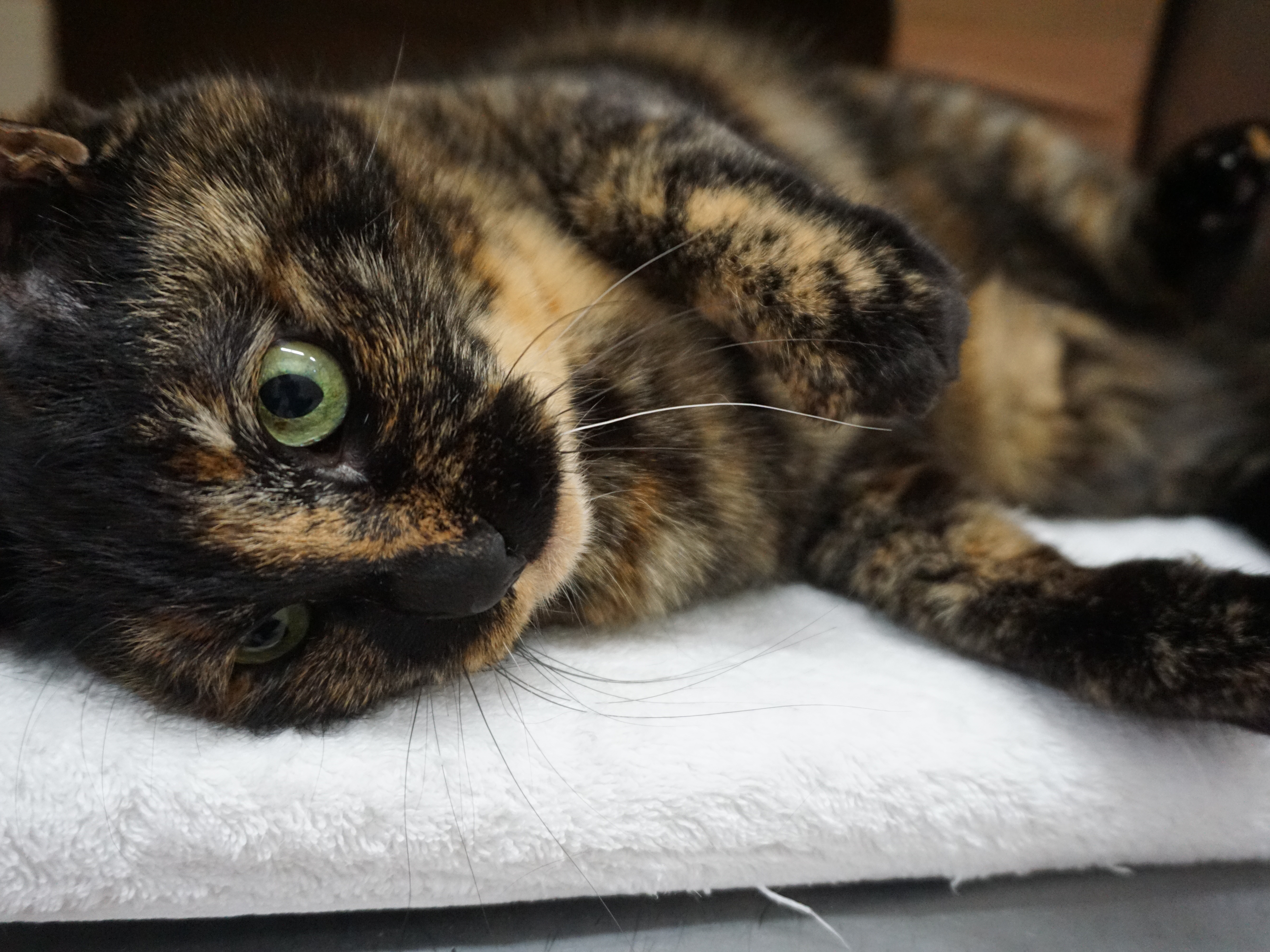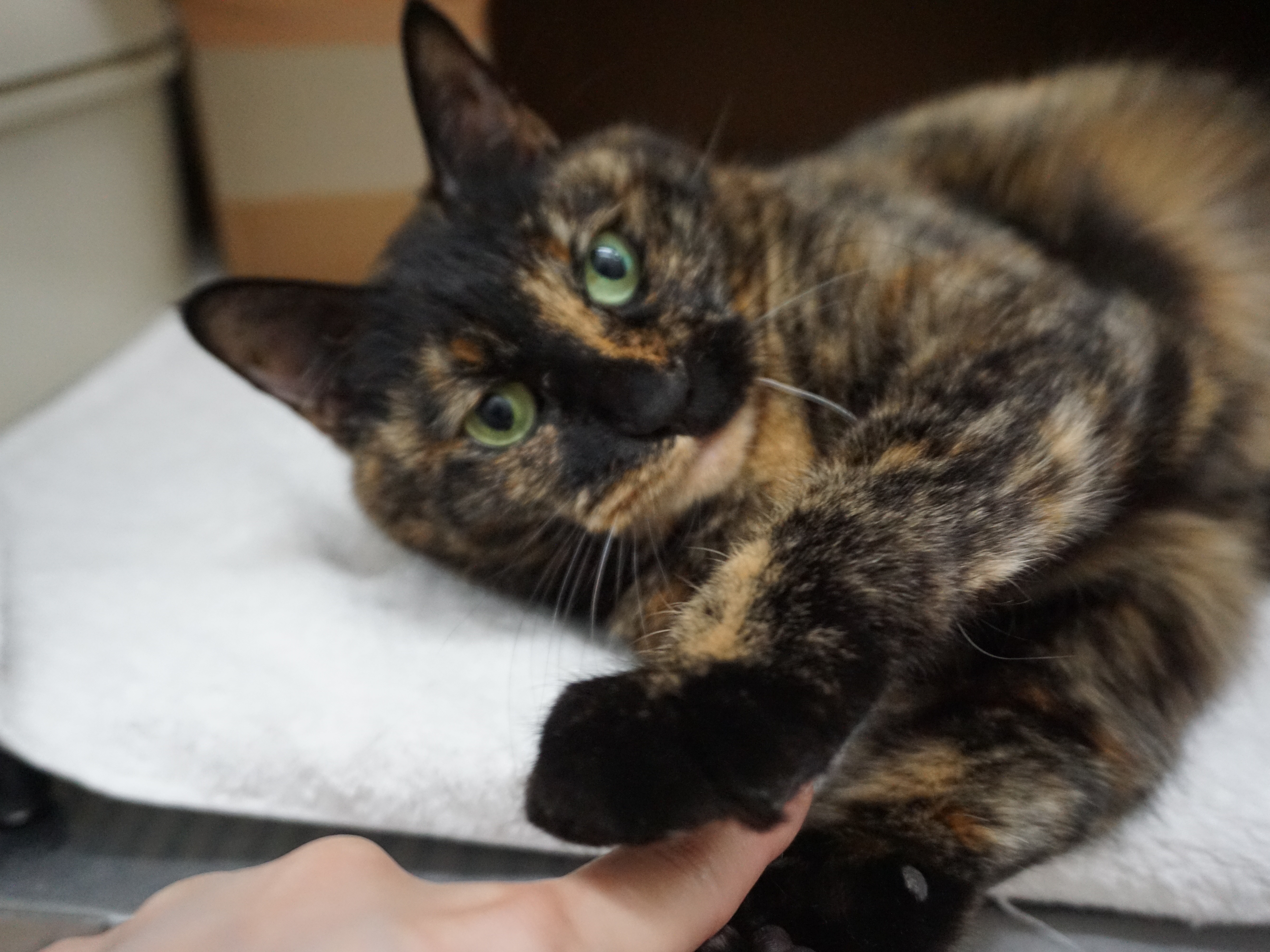 最近は突然の肩乗り方法を編み出し、隙あらばスタッフの肩に乗ろうと狙っています。