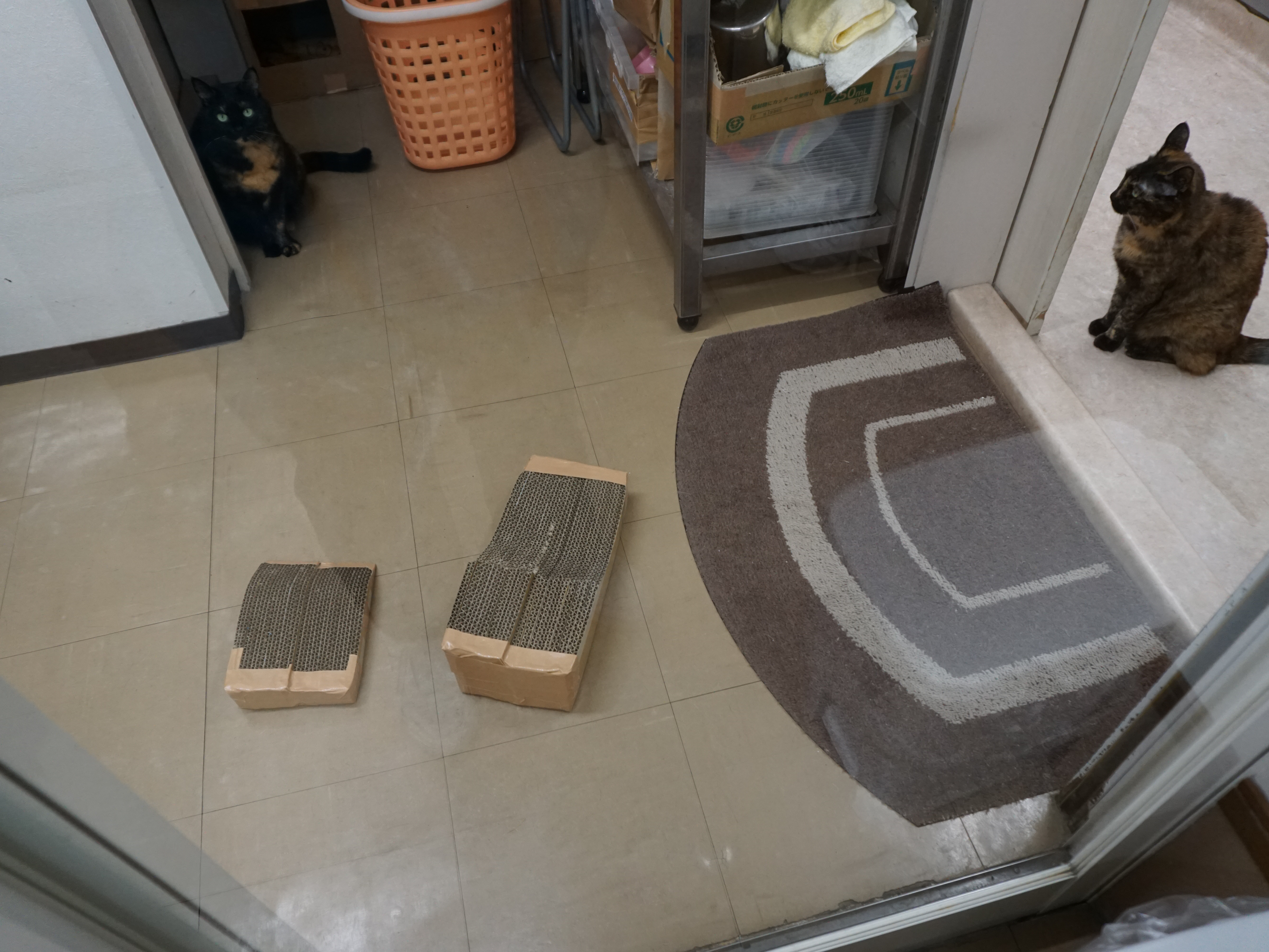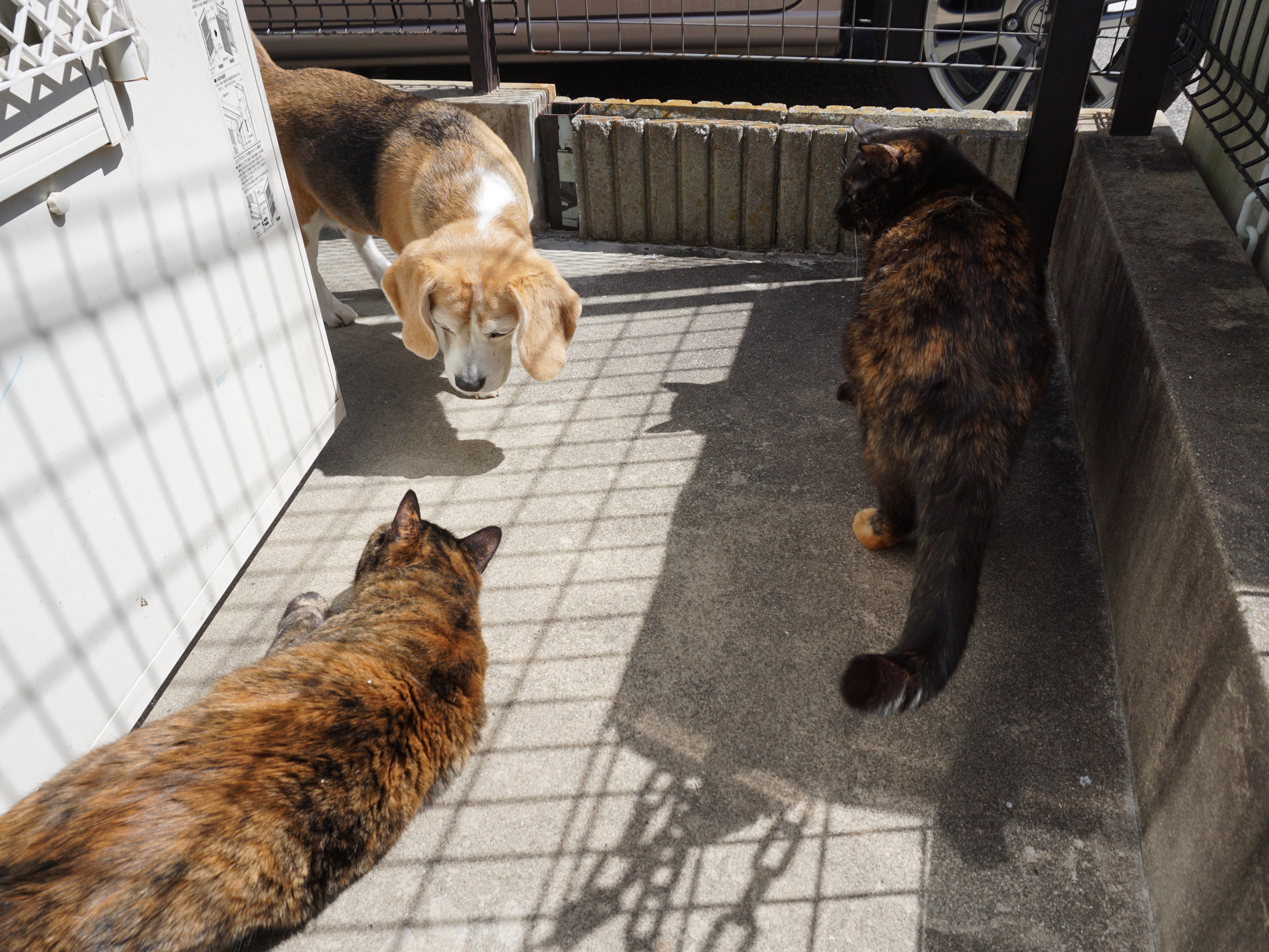 扉からそ〜っとのぞいたり、バルコニーでふたりでゴロゴロしたり。